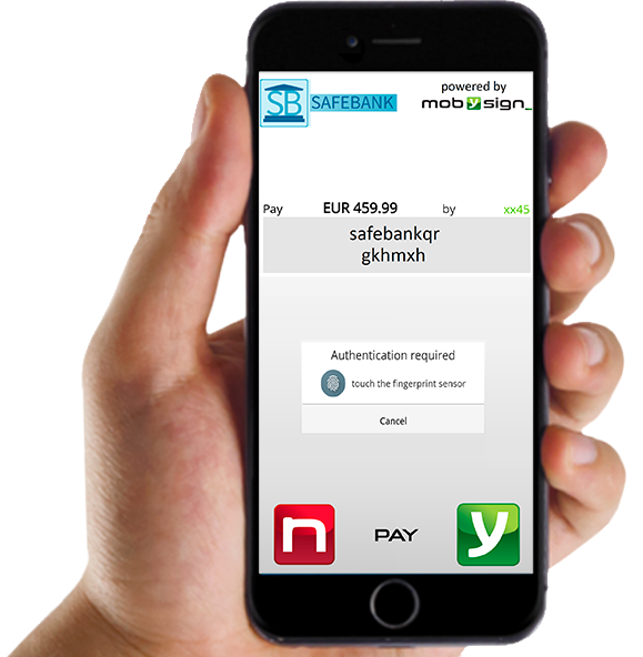 Mobysign does not transmit any sensitive data on the network and the user has a single PIN or fingerprint to access all services and finalize payments.