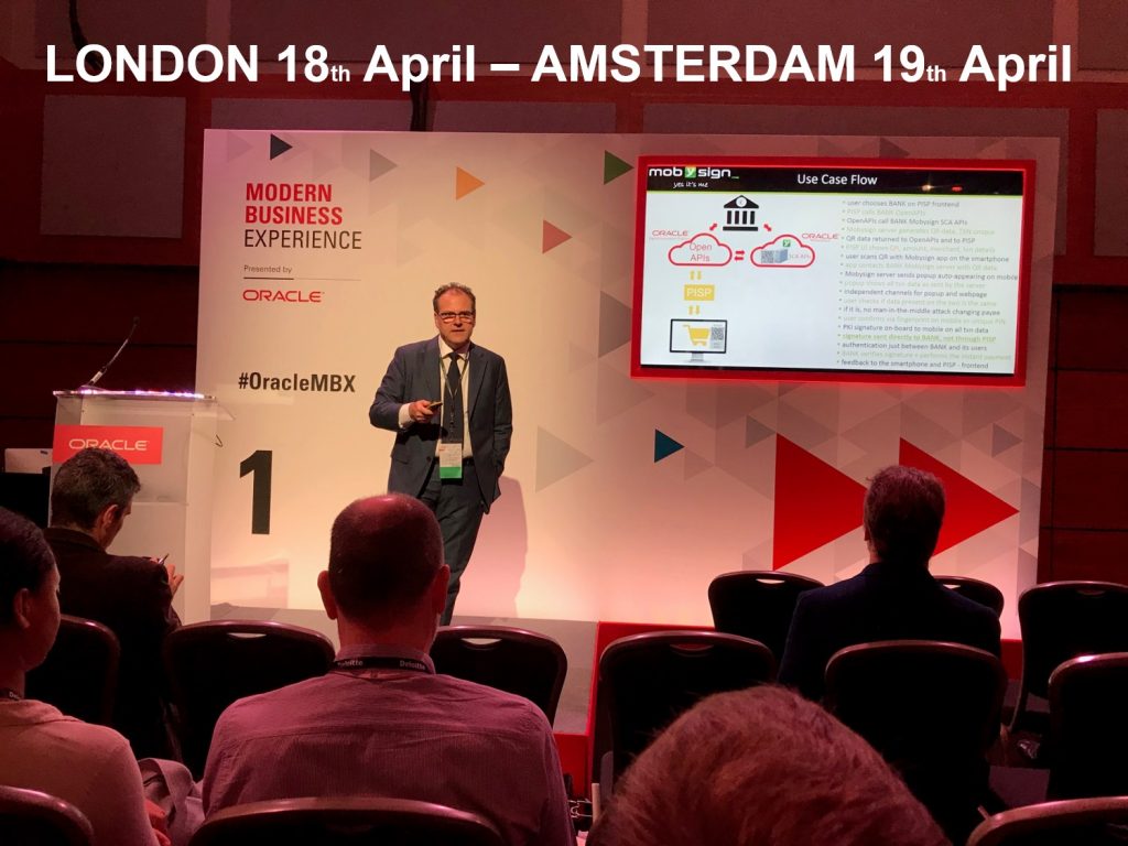 It was simply great to be part of OracleMBX both in London on the last 18th of April, Amsterdam on the 19th, and have the chance to present Mobysign StrongCustomerAuthentication integrated with Oracle OpenAPIs to an international and qualified audience: […]